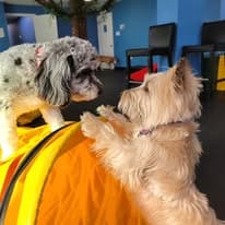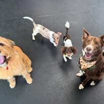Designed with your dog’s happiness and well-being in mind, our daycare features structured playgroups, enriching activities, and experienced, veterinary-trained staff—so every dog receives the attention and care they deserve.